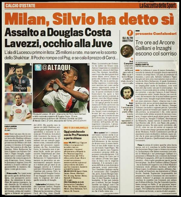 As mentioned last night Gazzetta says that Douglas Costa is our main target &he'll cost €25m but Milan wants to pay them via Installments.