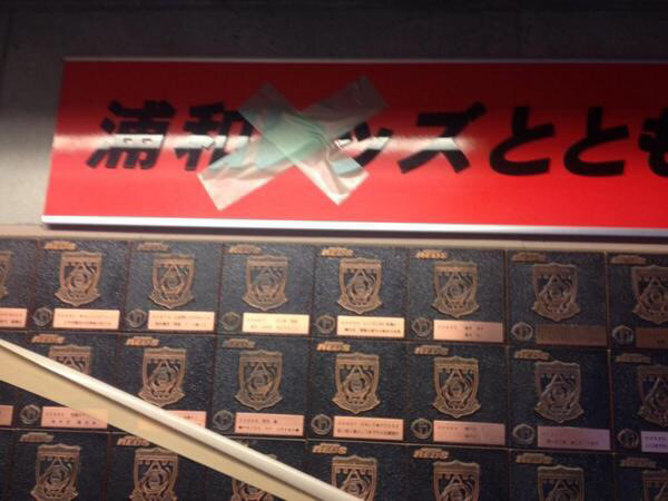 ガムテ貼ったのはスタ建設時に寄付した浦和サポのネームプレートだと思う