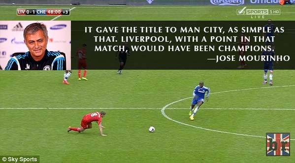 さらにモウリーニョは「あのプレー(ジェラードのスリップ)でタイトルはマンチェスター・シティの手に渡った」と語っている。