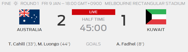 ◆アジア杯◆豪州×クウェート 前半終了 クウェート先制もケーヒル、ルオンゴで豪州逆転!