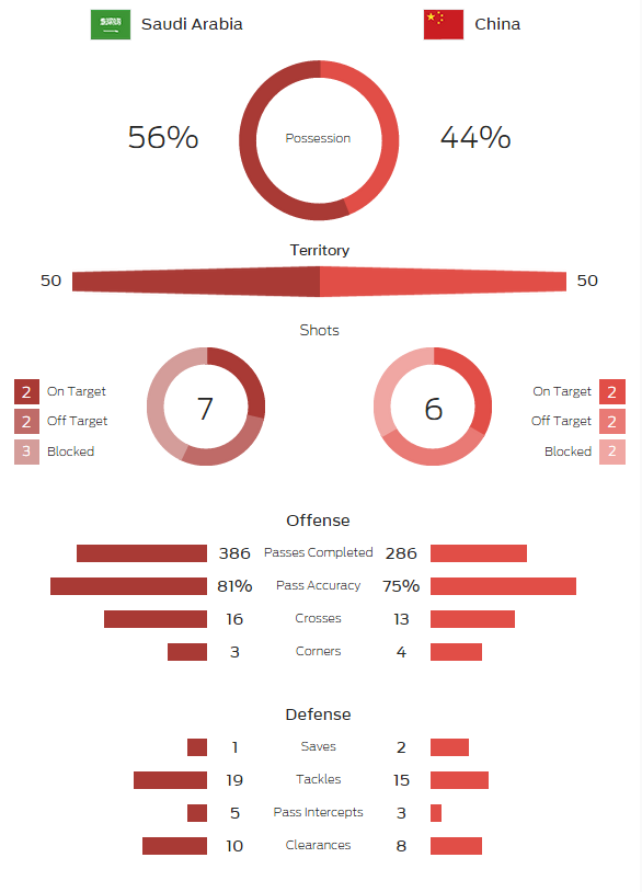 サウジアラビア 0-1 中国