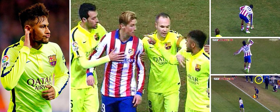 ⇒Atletico Madrid 2-3 Barcelona (agg 2-4): Neymar at the double again as frantic first-half settles fiery Copa del Rey battle(DailyMail)