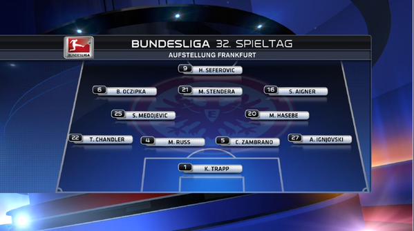 Unser Team: Trapp, Chandler,Russ,Zambrano, Oczipka,Ignjovski,Aigner,Hasebe,Medojevic,Stendera,Seferovic #SGE #SGETSG ^M.Jestaedt