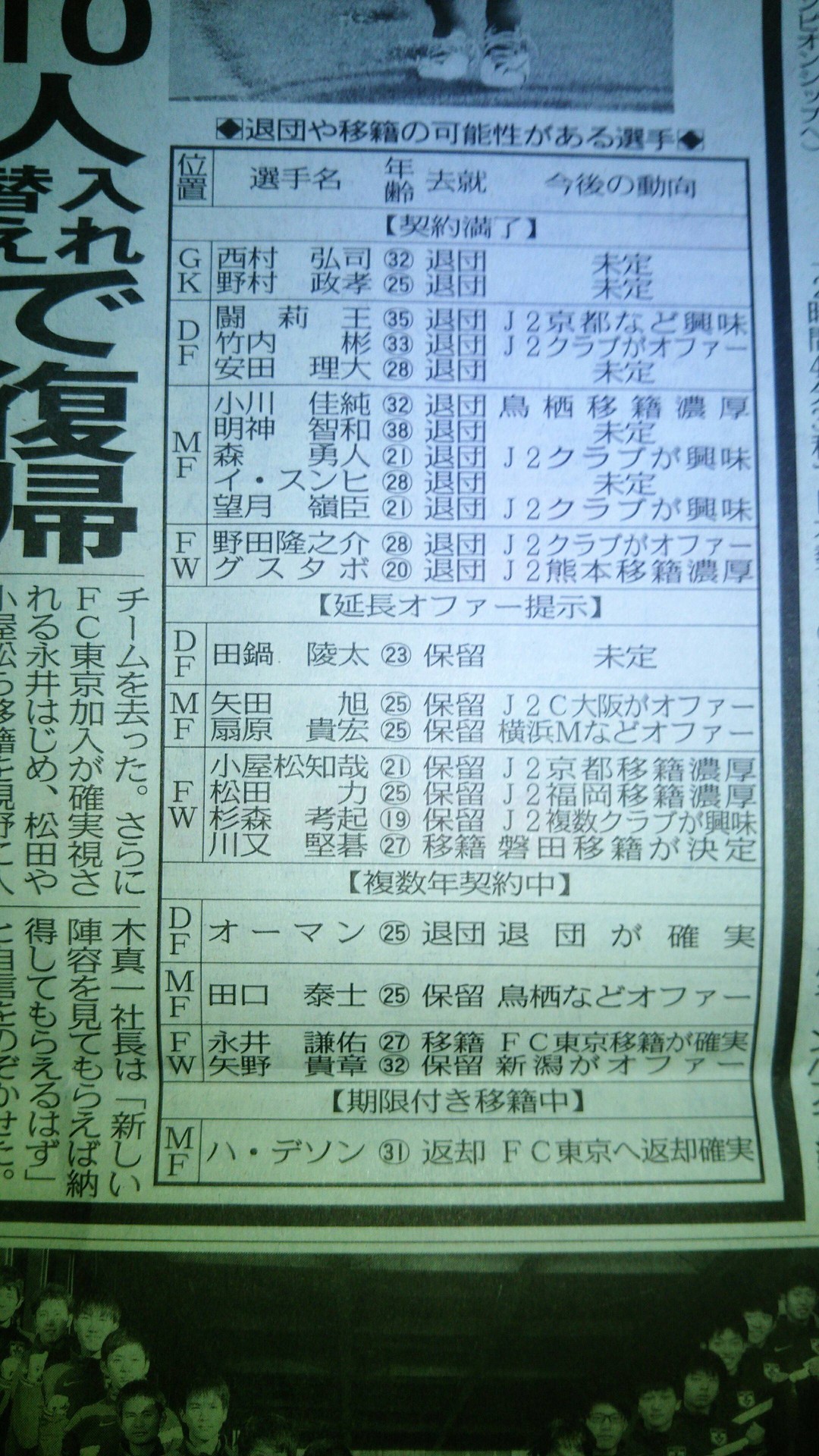 移籍・契約満了・放出