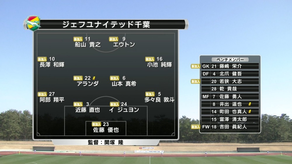 GK楢崎・武田・荻/DF大武・古林・高橋・酒井/MF磯村・青木・和泉/FWいない 10名