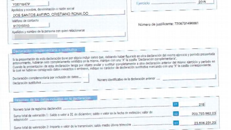 ⇒Cristiano Ronaldo's tax form released, shows assets of over €203m in 2015 (ESPN)