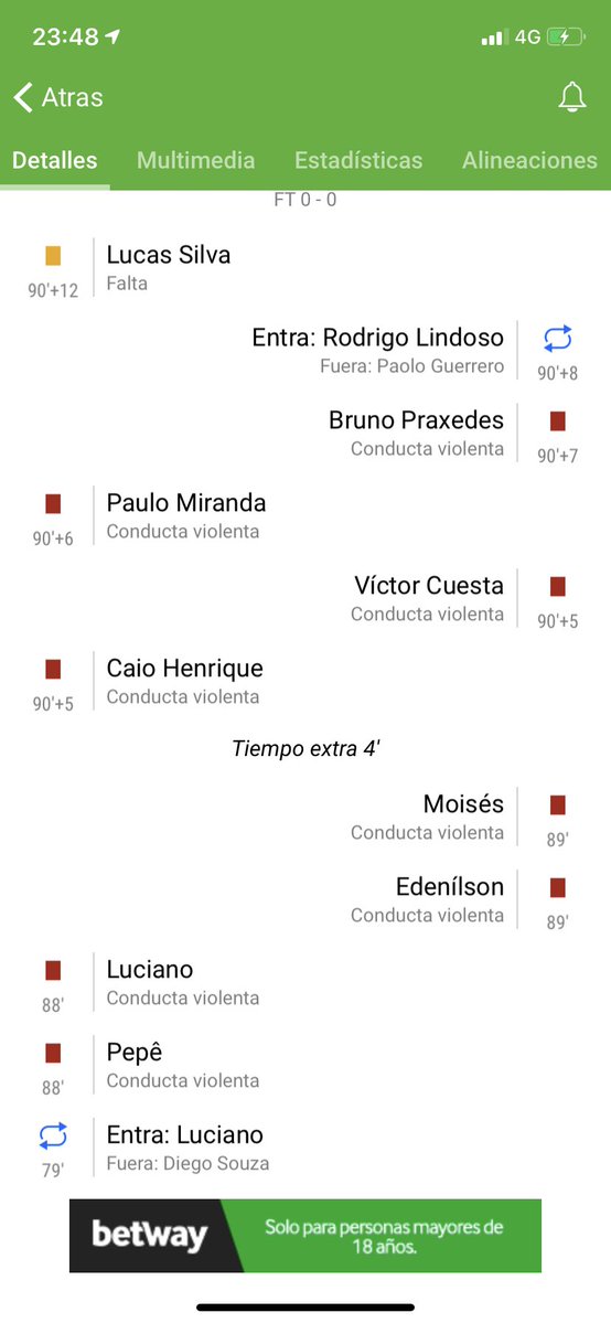 グレミオ対インテルナシオナルは、4対4の撃ち合いではなく……両チーム4人ずつの計8人が退場に。。pic.twitter.com/NaA5QatDuK