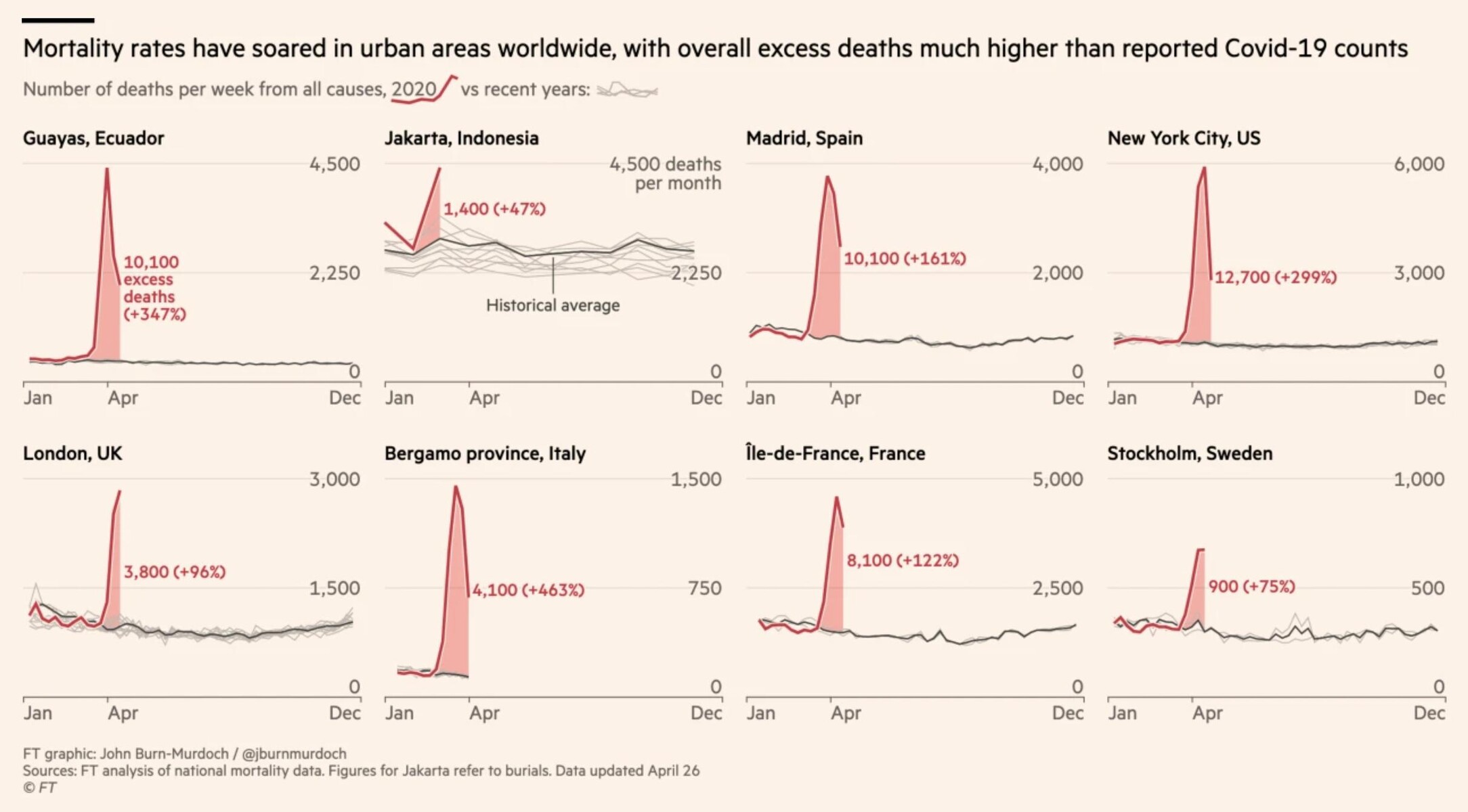 これまで公開が過去された52都市の2020年4月死亡者数の状況です。