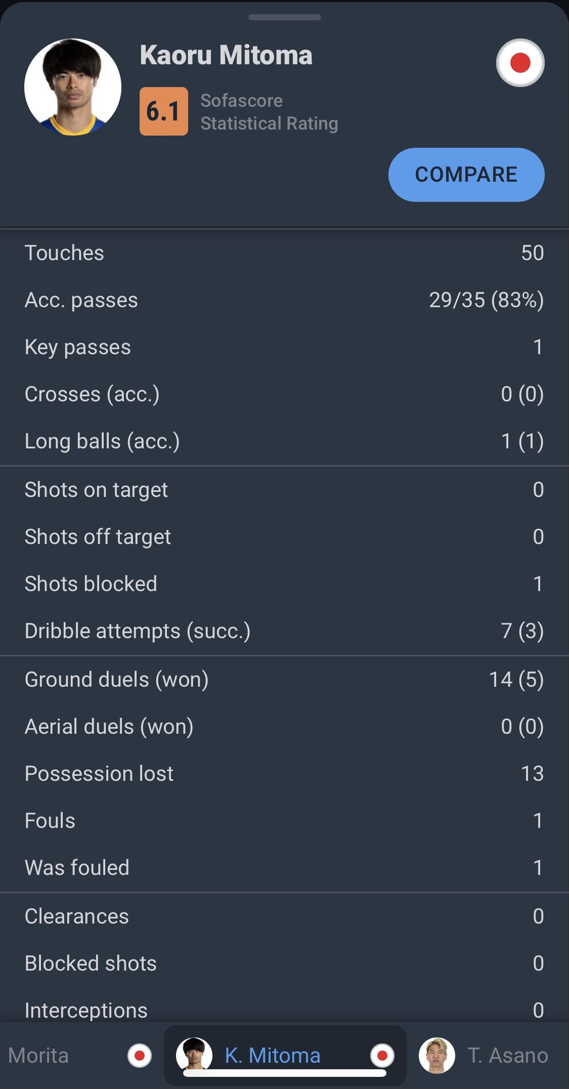 A代表初先発ということを考えれば及第点。堂安との関係は悪くなく、守備では簡単に仕事をさせなかった