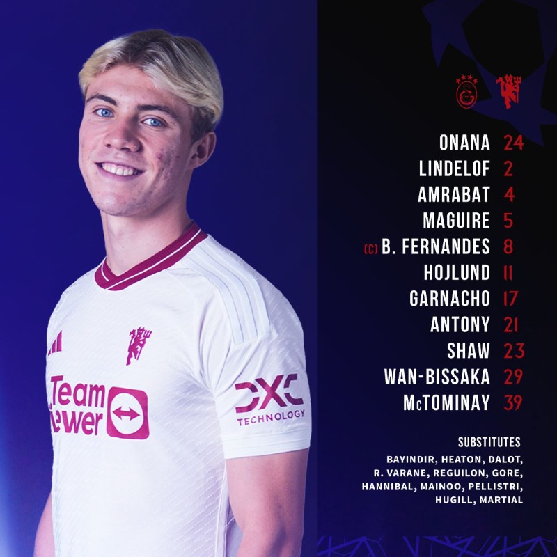 Onana; Wan-Bissaka, Lindelof, Maguire, Shaw; McTominay, Amrabat, Antony, Bruno Fernandes(C), Garnacho; Hojlund.