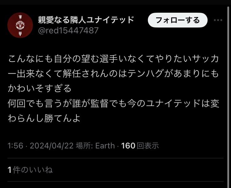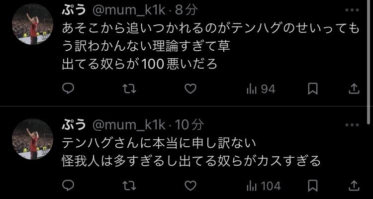 Xの奴らも1回「テンハグすげぇぇぇぇ」って持ち上げちゃったからここで否定すると過去の自分がサッカー見る目ないってことになっちゃうから引っ込みつかなくなってるだけよ