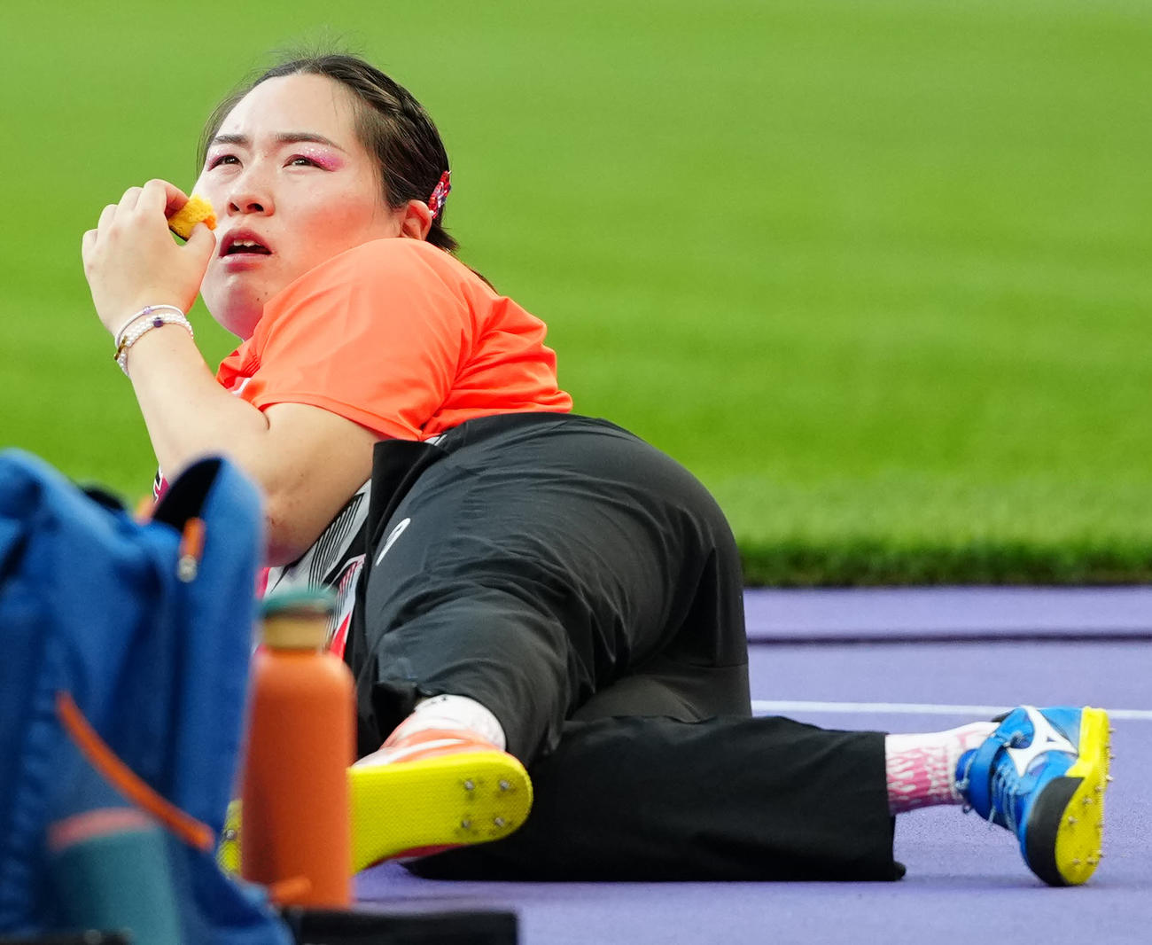 その中で、北口が験担ぎの一環として、昨年の世界陸上で食べていたスポーツカステラを、決勝でも自身の競技の間に口にしていた映像が繰り返し放送されると、和田は「アハハハ…なんか、トドみたいなのが横たわっているみたいな。かわいいなあ」と口にした。