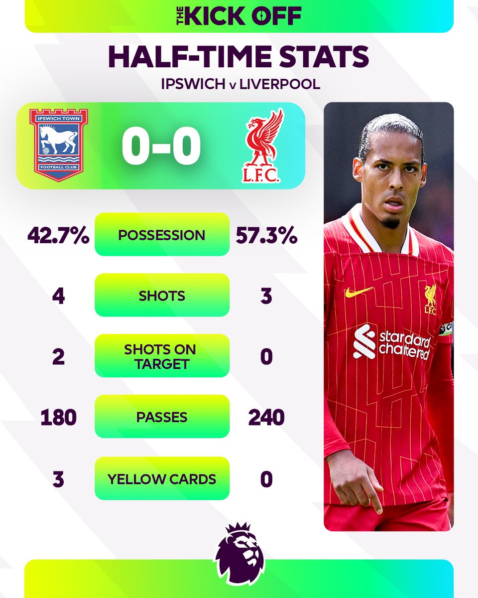 ⇒24/25 EPL Ispwichi×Liverpool(Soccerway.com)