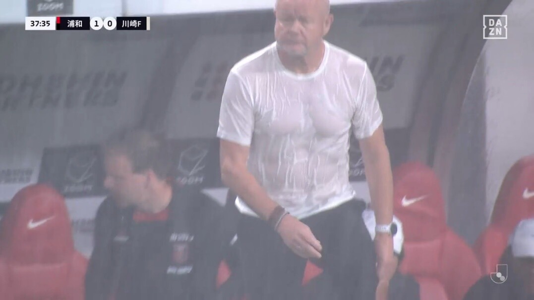 ◆画像◆浦和へグモ監督小太り爺さんと見せかけて実は腹筋が割れてる…雨天の濡れTで発覚!