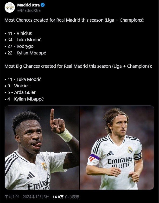 モドリッチはポジション柄守備もしてこれだと考えるとエグいな