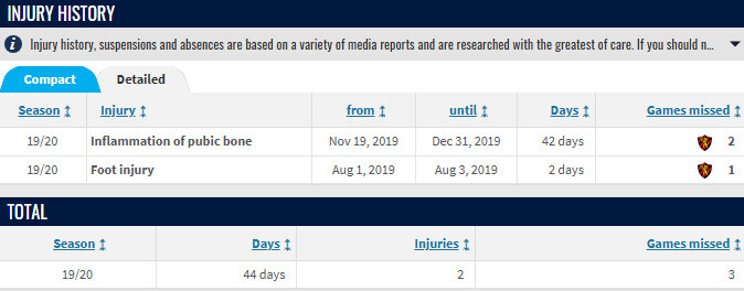 transfermarktの最新の受傷歴が5年前くらいだな