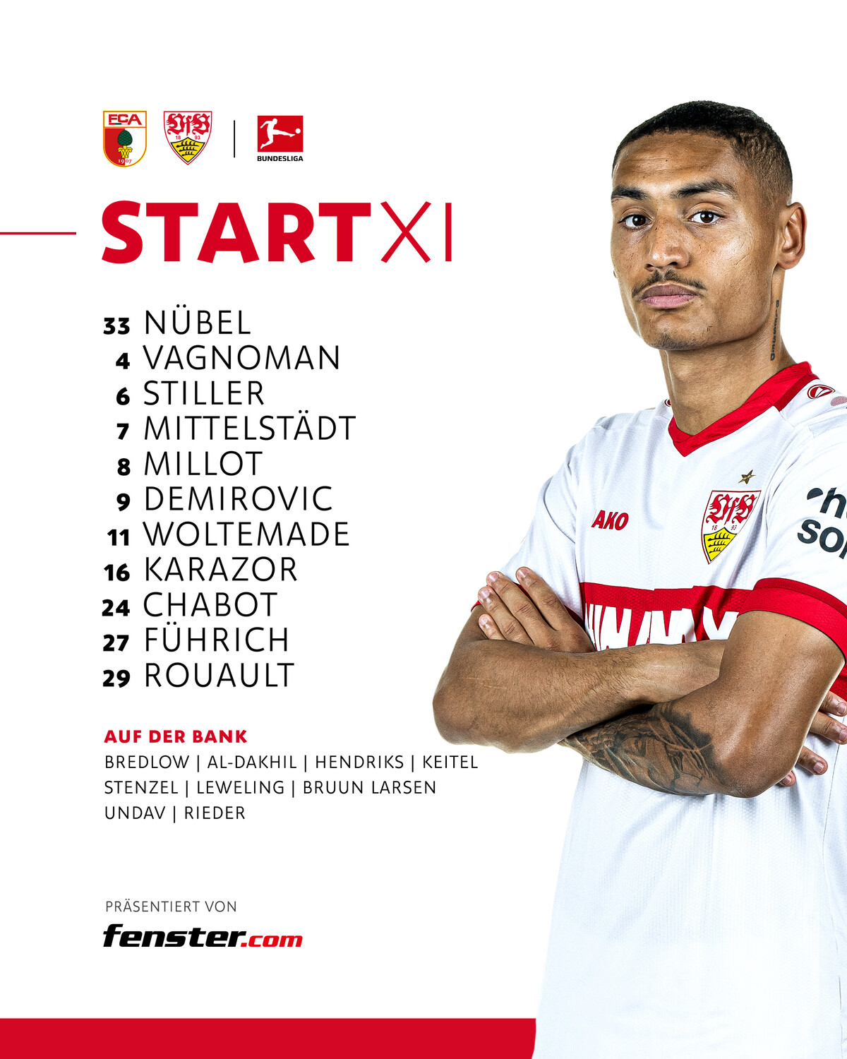◆ブンデス◆16節 アウグスブルク×シュトゥットガルト スタメン発表!チェイス・アンリ欠場