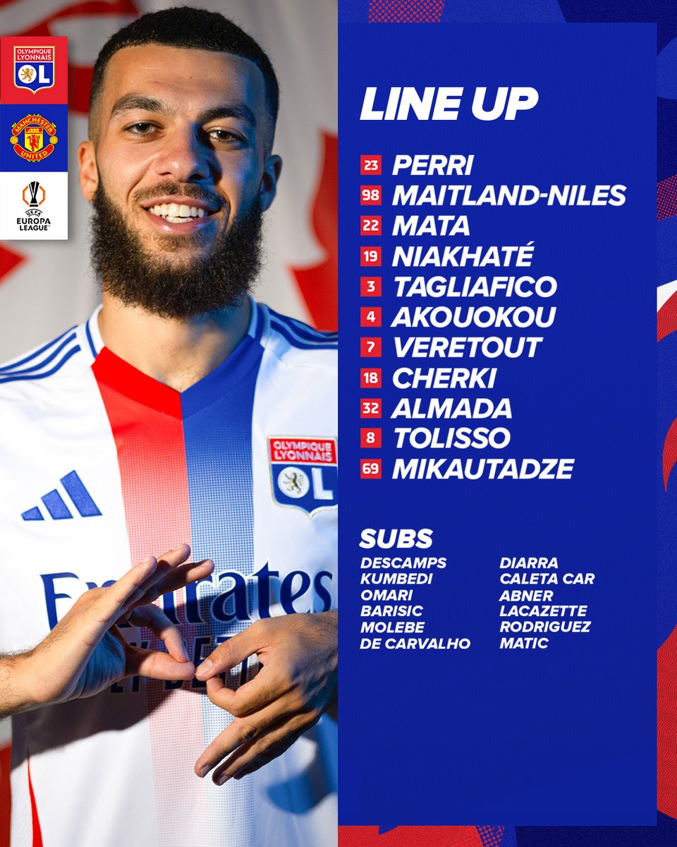 Perri; Maitland-Niles, Mata, Niakhate, Tagliafico; Akouokou, Veretout, Cherki, Almada, Tolisso; Mikautadze.
