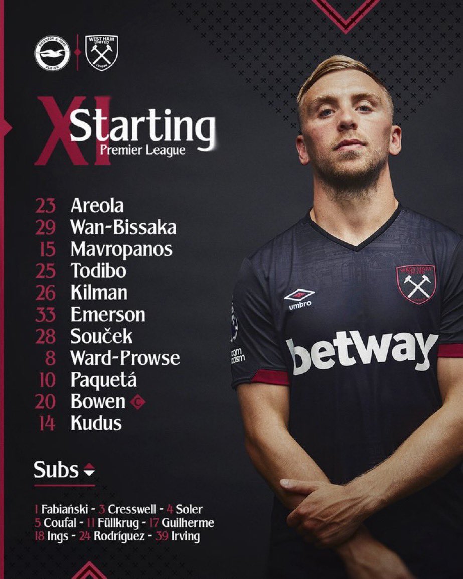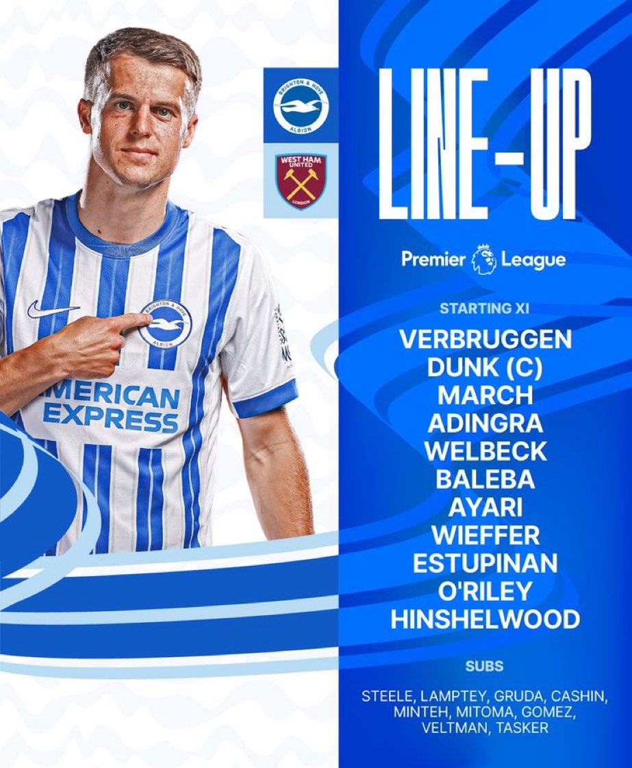 ◆プレミア◆34節 ブライトン×西ハム スタメン発表!三笘薫ベンチ