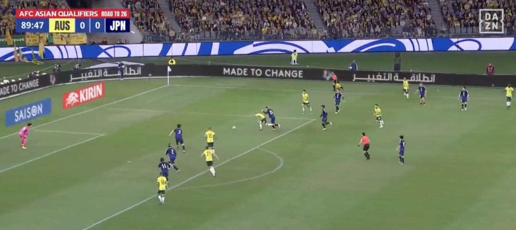 左からジョグしてる久保より近い位置に味方選手おったよね