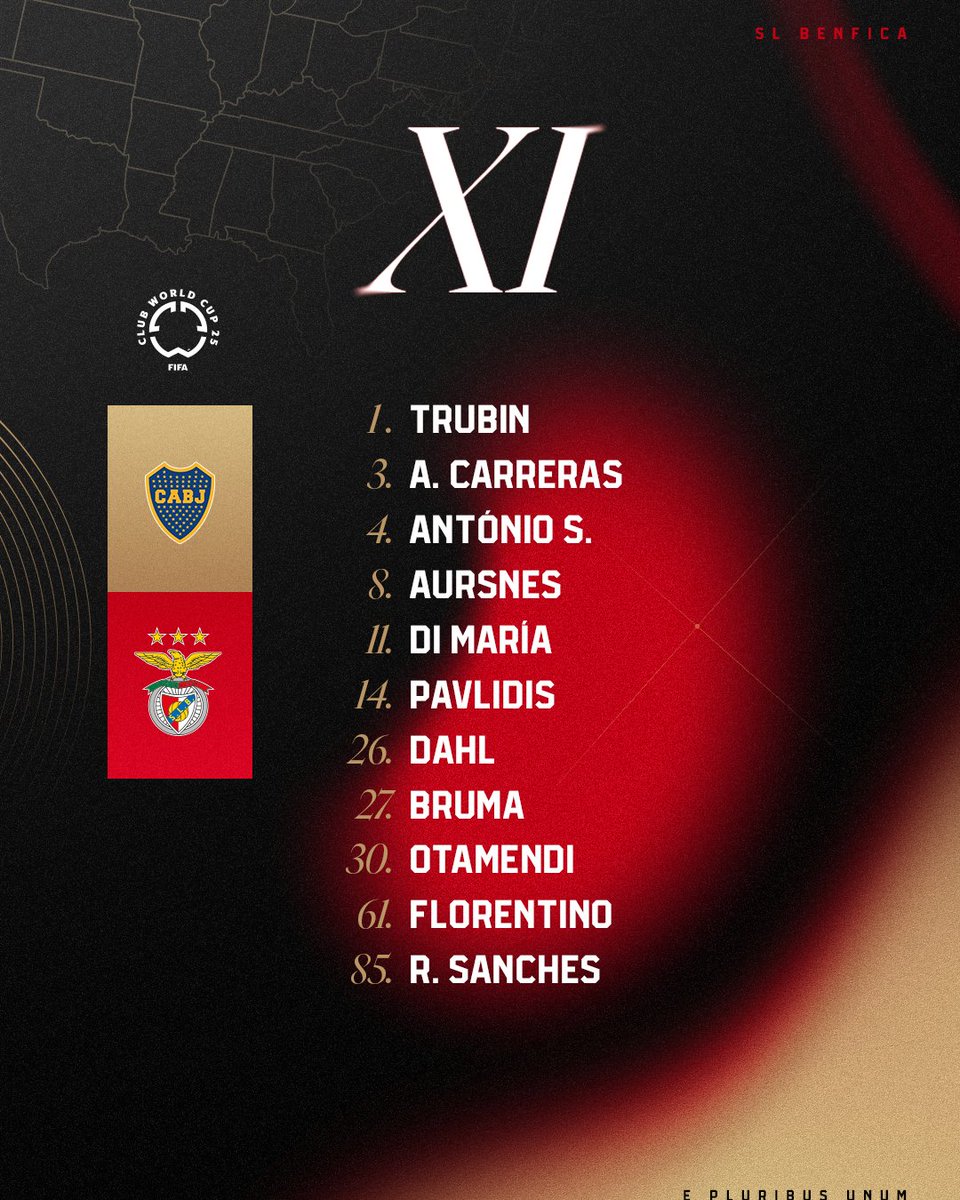 Trubin; Carreras, Otamendi(C), Antonio Silva, Dahl; Florentino, Renato Sanches, Di Maria, Bruma, Aursnes; Pavlidis.