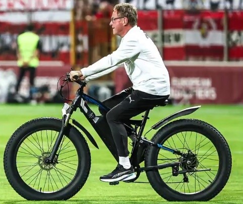 😅 オーストリア🇦🇹の監督ラルフ・ラングニックは足首の手術を2回受けており、まだ回復中なのでベンチからロッカールームまで自転車🚴♂️を使って移動している🤣