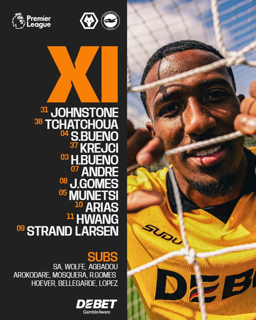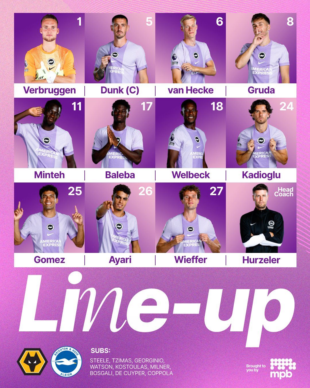 ◆プレミア◆7節 ウルブス×ブライトン スタメン発表!三笘薫欠場