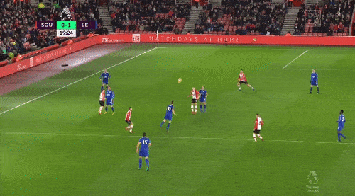 先日のアーセナル戦において、胸を使ってジェイミー・ヴァーディへ送ったパス!