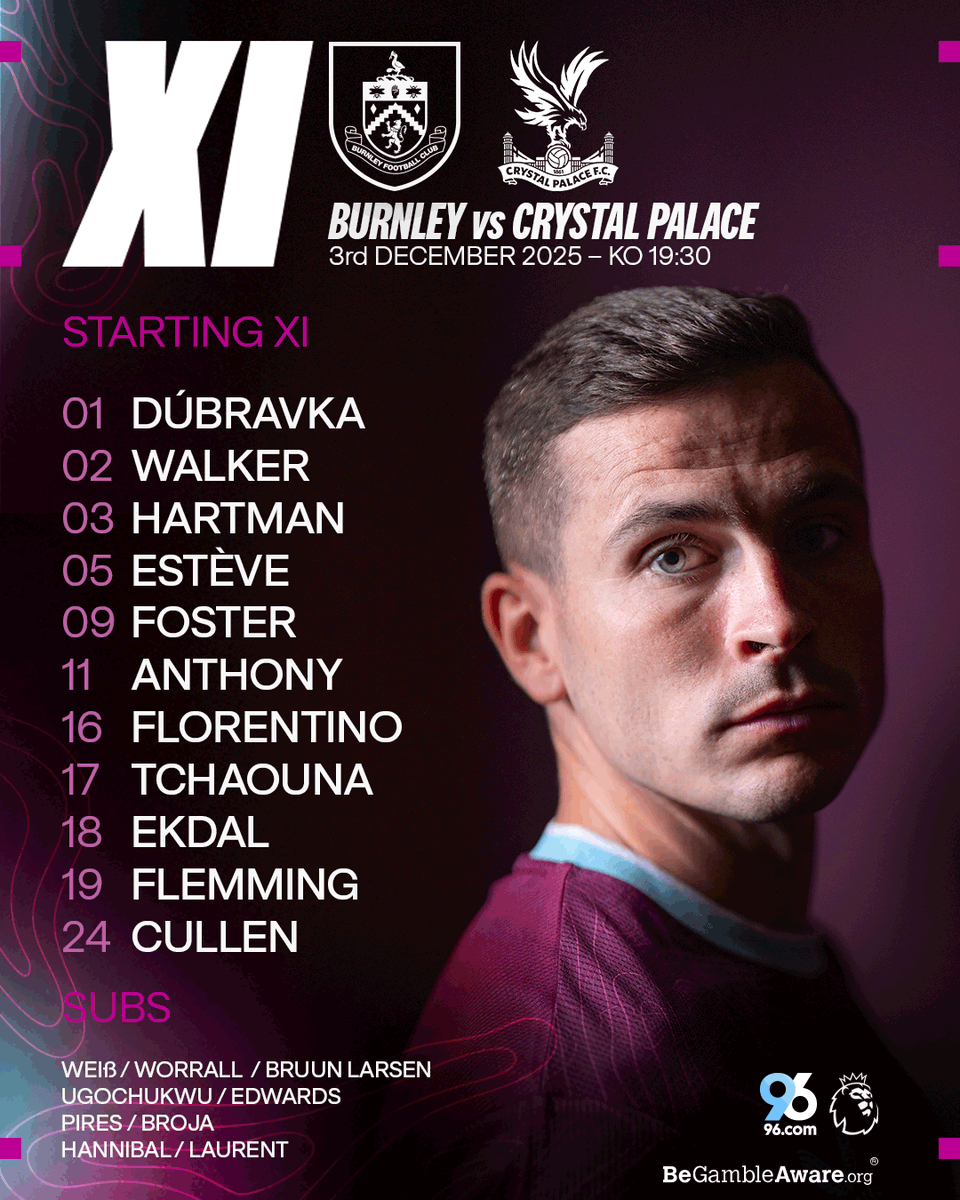 Dubravka; Walker, Ekdal, Esteve, Hartman; Cullen(C), Florentino, Tchaouna, Foster, Anthony; Flemming.