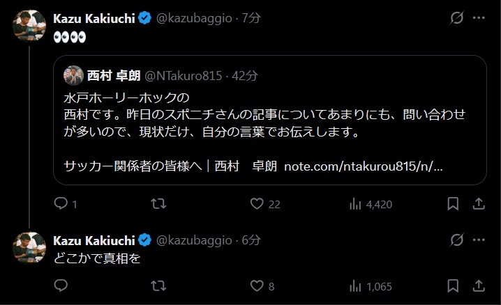 カズさんがフロントから情報流されて提灯記事書いてリークみたいな事言ってる方が激震だよ