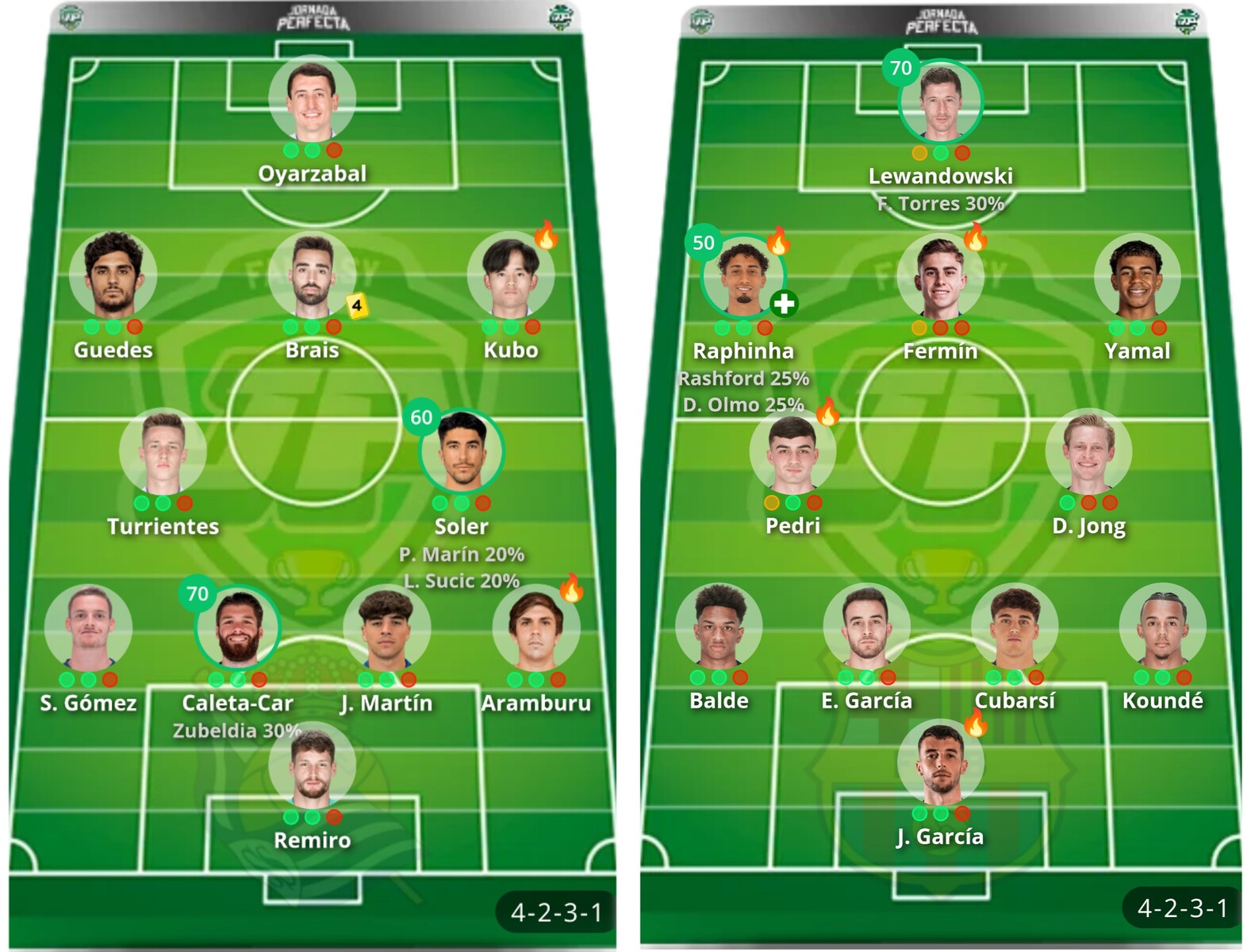 ラフィーニャ(60%)、フェルミン(50%)、ヤマル(90%)