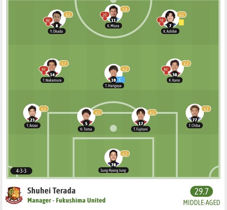 ⇒J3福島 58歳カズがJ最年長出場記録更新も前半20分に途中交代、甲府に1-4で敗戦(スポニチ)