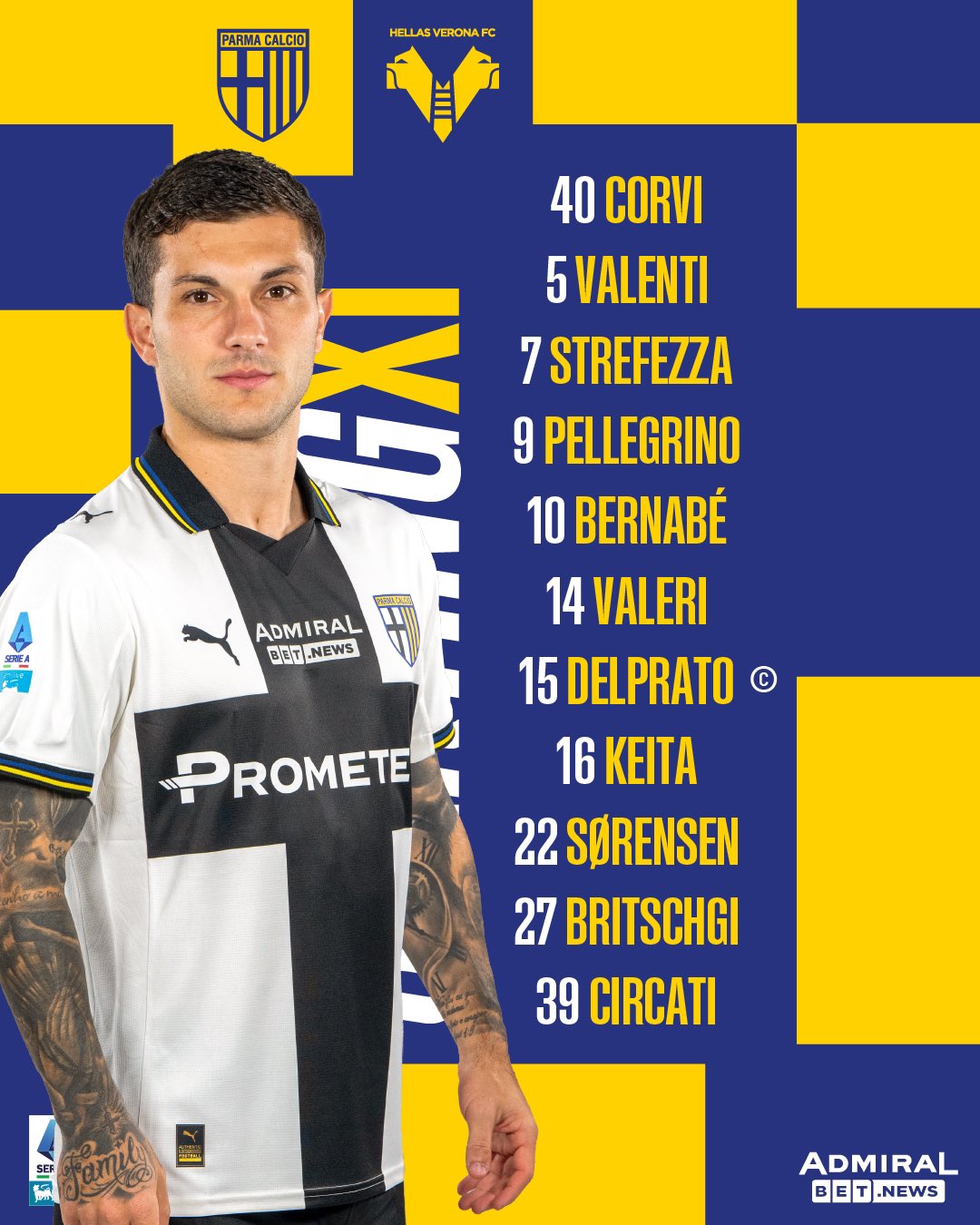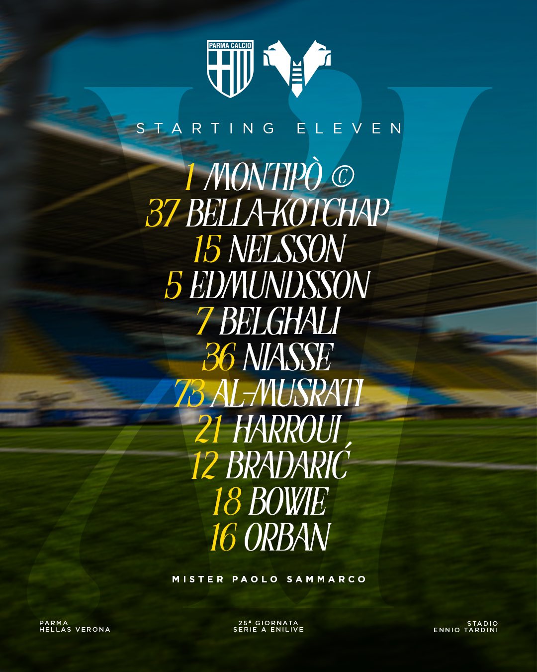 ◆セリエA◆25節 パルマ×ヴェローナ スタメン発表!鈴木彩艶欠場