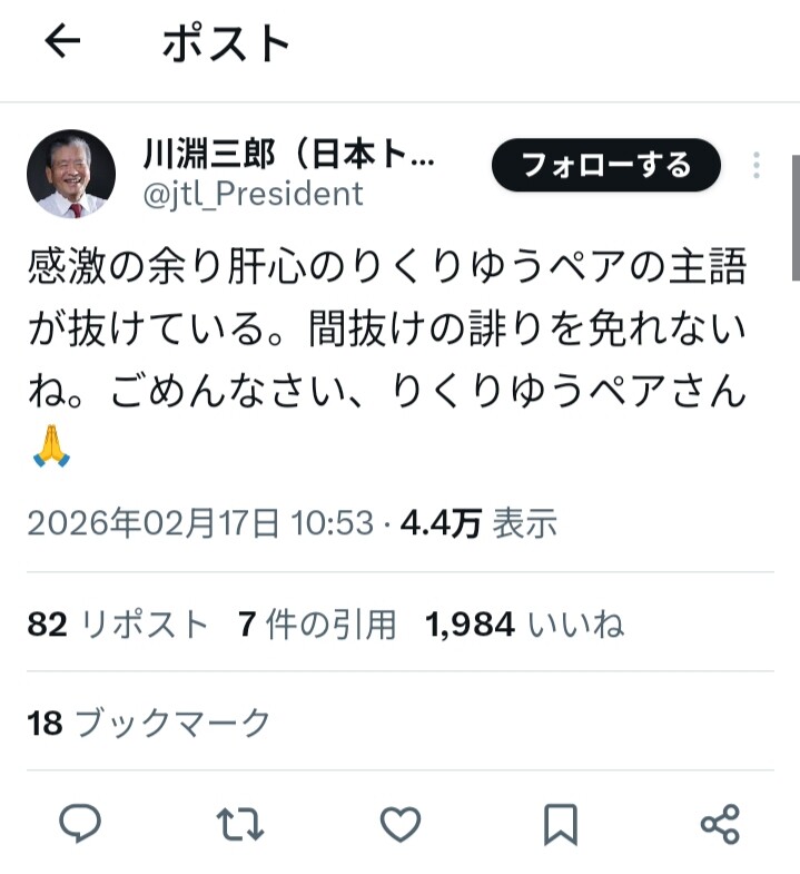 234: U-名無しさん@\(^o^)/ 2026/02/17(火) 17:31:11.41 ID:HnJMSuNN0