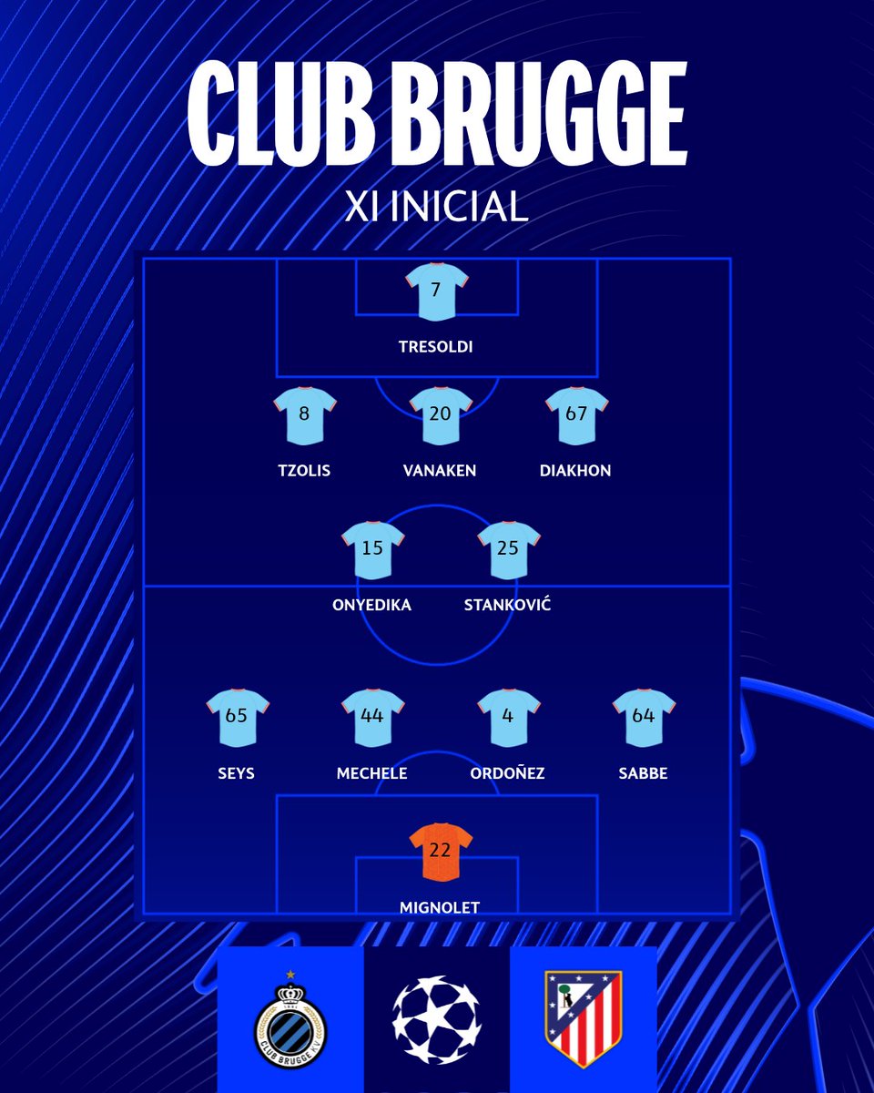 Mignolet; Sabbe, Ordonez, Mechele, Seys; Onyedika, Stankovic, Vanaken(C), Diakhon, Tzolis; Tresoldi.